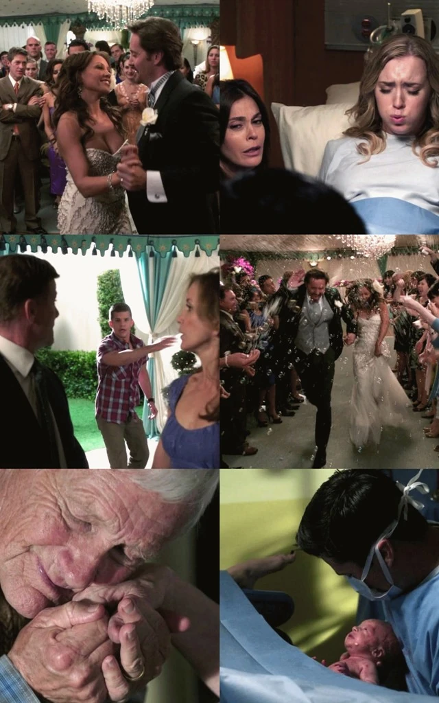 Les évènements suivants sont présentés dans l'ordre chronologique sur la musique de Johnny Mathis "Wonderful! Wonderful!" et représente le cycle de la vie ainsi que des moments-clés e la vie des personnages.