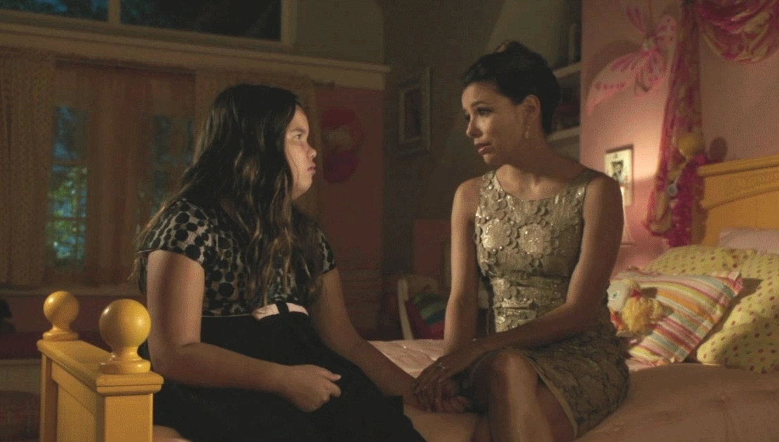 Later, in Juanita's room, Gaby asks her what she was thinking, as her parents did not raise her like this. Juanita apologizes, and her mother says she just wants to understand why she did what she did, she thought she liked Bob and Lee. Juanita tells her she does, they're nice, but won't reveal why she did it. Gaby tells her she's going to bed and they'll discuss her punishment and how she'll make it up to the gay couple the following day. Before she can leave, Juanita asks her if her father is dying. Gaby is surprised, and asks why she would say that. "Because you guys have been acting different. And, daddy sleeps a lot. And... everyone seems sad. Even when we're happy, it's like... I don't know, just sad", she says. Gaby sits by her side, and tells her that both she and Carlos are fine. Her daughter asks why she wants her and her sister to go live with Bob and Lee. This question takes Gaby by surprise, and Juanita reveals that she heard her and Carlos talking. Gaby explains that it is called being a guardian. Every family has that, it's just in case. She then tells her child that nothing is going to happen. Juanita then takes the opportunity to ask if they can rent that cabin for Spring vacation, to which Gaby responds that they can. "And everything is going to be okay? You promise?", the young girl asks. Gaby says (and gestures) "Cross my heart", and they hug. However, Gaby is concerned.