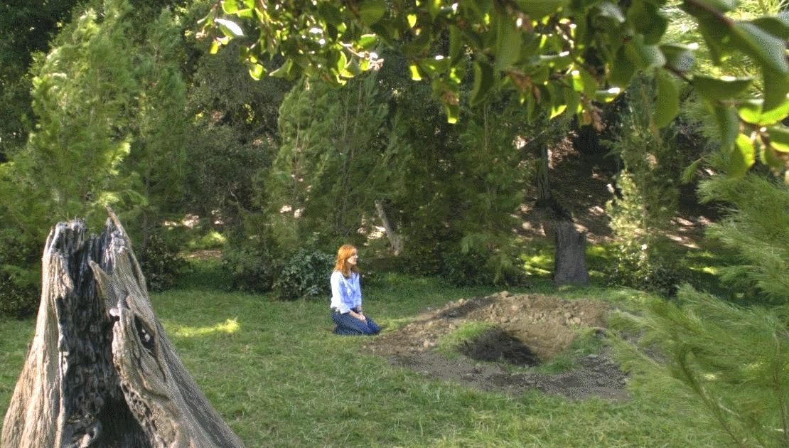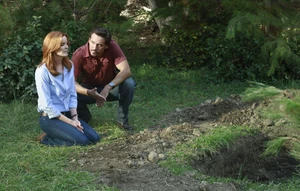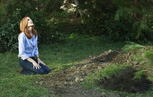 ![]() Bree kneels down by the unearthed grave. |