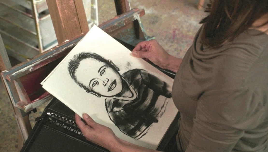 Susan is seen in Andre's studio, as he admires her latest work.
