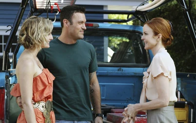 Susan, Lynette and Gaby become worried about Bree when they count how many men they've seen her with in the last week and decide the time has come for them to reach out and help her. The girls plan an intervention but Bree won't have any of it and she rejects her friend's support. At the dive bar the next night, a skeezy guy attempts to rape Bree. Her life is saved by her ex-husband, Orson, who uses a taser to scare away Bree's attacker. ("Is This What You Call Love?")