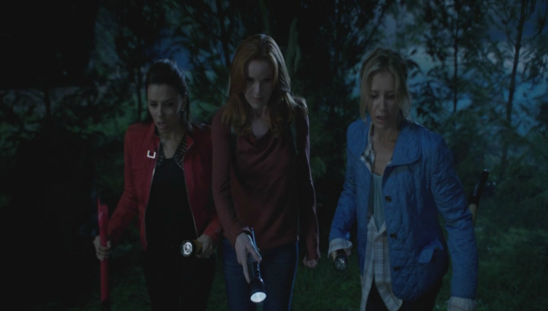 ![]() Bree, Lynette and Gabrielle discover someone has beaten them to the corpse. ("Witch's Lament") |