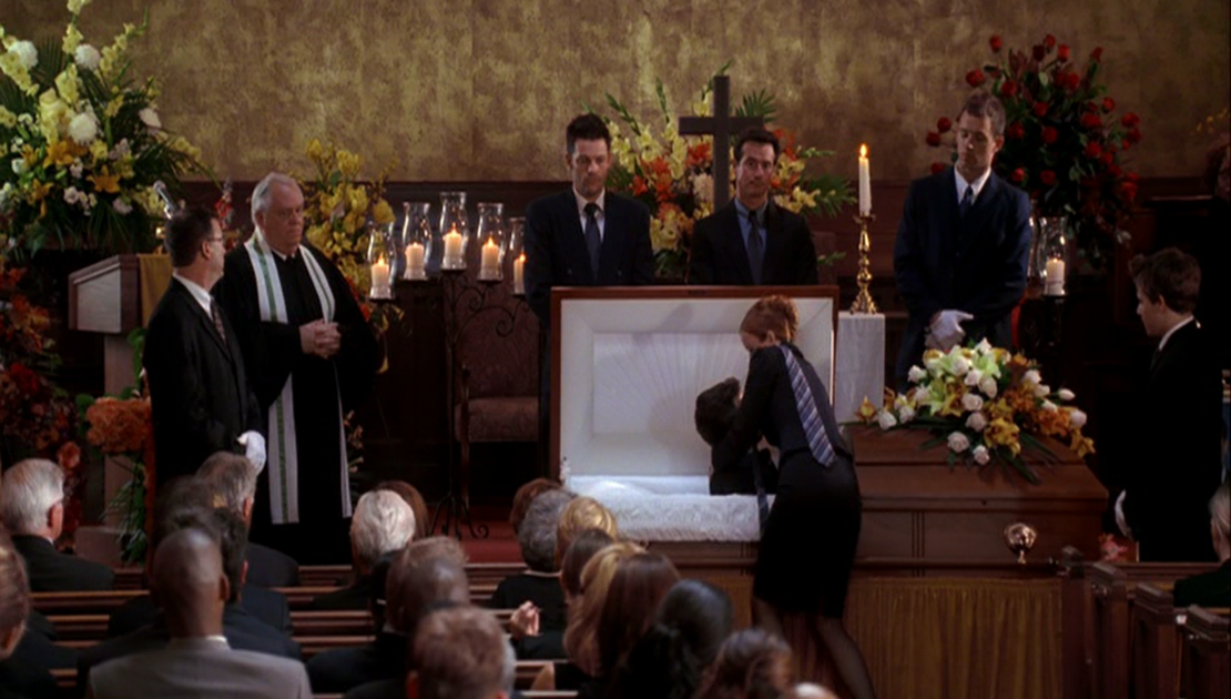 ![]() Bree makes a scene at Rex's funeral. ("Next") |