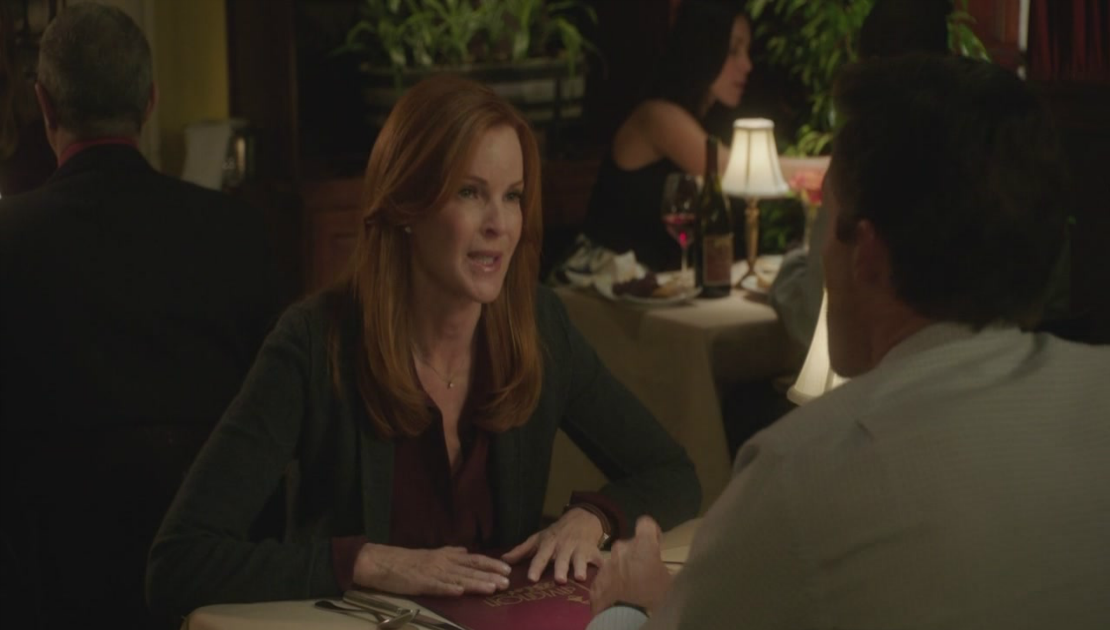 Bree gets drunk alone at an Italian restaurant.