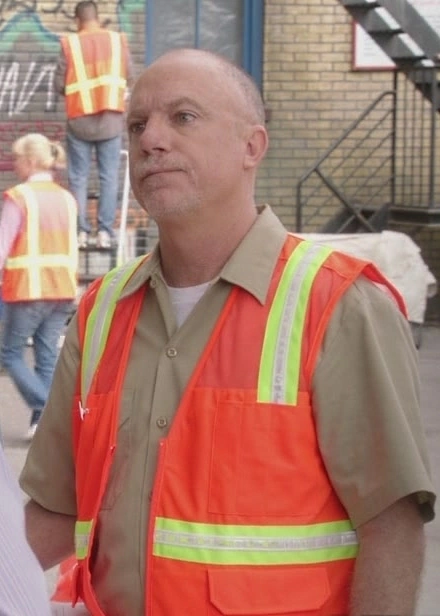 In a rough part of Fairview, Susan is wearing an orange high visibility jacket as she paints over some graffiti on a wall. Doug tells Susan not too drip paint, as its wasting money. He then tells her to hurry up, as she needs to paint over a “banana” on another wall, but Susan awkwardly points out that it isn’t a banana. As he leaves to investigate, Carlos approaches Susan, and jokingly tells her that he worked hard on the graffiti she was painting over. Susan joyfully asks what he was doing, so he says that he started reading To Kill a Mocking Bird, and that he couldn’t wait to talk to her about it. She says she can’t as she’s “beautifying the city”, so Carlos asks if she gets lunch. However, explains that Mike found out about them both, and says he feels weird about it so they shouldn’t have intimate lunches. Carlos asks why he’s weird because nothing’s going on. She then explains that them both meeting in the night and lying about it made a “red flag”. Carlos then offers to help with the “beautifying” so they can talk; however, as he picks up a vest, Doug returns and asks if Carlos is doing community service. Carlos says that he’s just being a good citizen, but Doug tells him he cannot help unless he committed a crime. Carlos asks if Doug is serious, which he is… Carlos takes a piece of paper off Doug, crumples it up and throws it on the ground. Doug then passes Carlos’s vest back, meaning he’s now on community service for littering. ("Watch While I Revise the World")