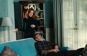 The following morning, the twins come downstairs and are greeted by their parents, who don't look very happy. Tom hands them the classified ads, and Lynette warns them they have seven days to move out of the house. They are not happy to hear this, and Porter says they had promised him he could stay in the Scavo household until he graduated from college, but it seems as though they've changed their minds. The twins say they like it there, and Lynette replies that they are too spoiled in their own home, and thus they need to grow up and learn to be independent, and that's gonna start with them getting their own place. Porter asks how they're gonna pay for it, and Tom hints that they should get jobs. After they've left, Tom asks his wife if she think they're ready, and Lynette says she doesn't, but the twins are drifting through life and they need to push them in the right direction. Later, the twins set up the car and prepare to leave, with their parents showing their pride in them in the meantime. Lynette asks when they will be able to see the twins' new place, and is told to wait a few days so that they can set everything up. Lynette then takes a picture of them on her camera, and says she will treasure that memory forever. After they drive away, Lynette tells Tom she realizes this is a good move for them, but she misses them already. Tom embraces her, but is surprised to see the twins park by Mrs. McCluskey's house across the street. They get out of the car, and Karen comes out of her house, shouting to her husband that their new tenants have arrived. Tom and Lynette become less than happy to witness this, and the latter immediately deletes the picture she took from her camera. Lynette and Tom discuss the twins' current situation. Tom says what they did isn't exactly "leaving the nest", but Lynette is confident that a tough old lady like Karen McCluskey can whip their boys hard. However, soon afterwards, Karen calls her over the phone asking her how one prepares a Denver omelet, because the twins said the ones their mom makes are better than the ones Karen makes. Lynette says she'll be right over. In their household, the boys' girlfriends from the other night are there, sharing vapid stories. Karen says Lynette's there to share some recipes with her, and then she tells the boys she'll leave their clean clothes by the foot of their beds. Lynette is concerned that she's actually doing all that for them, but Karen says she doesn't mind it, having the boys over is a real treat for her and Roy. Lynette says the whole point of them moving out was for them to grow up, but it seems as though they just moved from her boob to Karen's. She calls her to a sidebar, saying they need to learn to be responsible, and Karen explains to her they've been the perfect tenants so far. Lynette uses the example of them bringing two girls overnight as an excuse to justify her complaints, but Karen indicates that the girls are great at helping Roy getting his juices flowing, which she then uses to her advantage. Lynette is creeped out by this. Later, Lynette visits the twins and brings them a big keg of beer to congratulate them for actually stepping out on their own. The twins say they can't drink so much beer by themselves, so Lynette suggests that they throw a big party for all their friends to come, so they can show them their new digs. Lynette is startled when Karen brings the boys to her house by their ears, after the party they've thrown got her house trashed with toilet paper on the outside. So she's returning them. Lynette keeps them from slacking off yet again, saying they'll be cleaning up McCluskey's home and checking the rental ads again. The twins aren't budging, though, and Lynette says she feels sorry for them, because they are too helpless. Porter and Preston then tell her she is responsible for that, because she was always too overprotective of them, and condescending. Every time they tried to do something, Lynette always said it was easier and better if she did it herself. Lynette realizes they have a point, after all, she wanted them to stay kids for too long. She wanted them to have a childhood because she never did, having a crazy mother and needing to take care of her two younger sisters. Lynette will be more supportive from then on, and starts by teaching them how to make omelets.