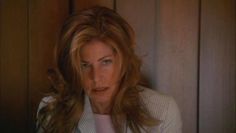 Katherine runs into her own home and quickly picks up the phone, she then hears, "What's your hurry, Kathy?" Her head rises slowly and she turns around, she sees Wayne and we see his hand move over to the door and lock it before cracking a smile. Katherine smiles and stares at him, she then quickly runs into her kitchen and over to her drawer, Wayne chases her as her hand is rifling through the drawer for her gun, Wayne slams the drawer onto Katherine's hand causing her to yelp in pain and fall backwards, clutching her wrist. Wayne grabs the gun and aims it at Katherine asking, "What happened to my daughter?" She stares at him, breathing heavily, and says, "I'm not telling you anything... So you might as well kill me... I don't care." He says he believes her but asks about Dylan, or, "That girl that lives here with you." He says that he'd bet she'd care if he were to kill her.