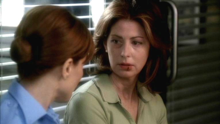 We are treated to Katherine's flashback and we see her sitting in the police station with bruises and various injuries around her face. A police woman offers her a cup of water and Katherine thanks her as she accepts it. The police woman sits next to her to discuss why she is there. "So, I take it this isn't the first time your husband's hit you?", she asks Katherine who shakes her head, avoiding the police woman's gaze. She says that he keeps promising it'll stop but it just gets worse. She says she's afraid he will do something to her daughter. Katherine begins to well up and turns to the police woman, begging that she has to help her. The police woman asks if Katherine's ever reported him, she says she did once before but the paperwork couldn't be found when she called. The police woman rifles through papers and realizes that Katherine's husband is Wayne Davis, one of their patrolmen. She turns to Katherine and asks her if she wants some advice, Katherine nods quickly and the police woman continues, "Your husband's got a lot of friends around here. Of course you could press charges but... I can't guarantee that one of his friends won't lose the paperwork again." Katherine asks what she should do and the police woman tells her, "get as much money as you can lay your hands on. Grab your daughter... And run." Katherine looks forward, realizing what she must do next.