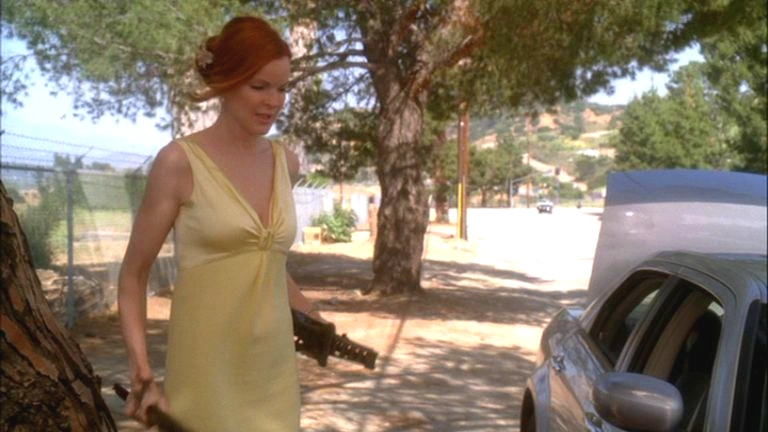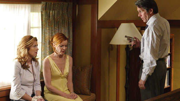 - Some events of this episode are very similar to the events of the season 1 finale, "One Wonderful Day": a hostage situation occurs, at the Simm's house no less, and then someone comes over and knocks on the door. Only then Edie leaves at the end, whereas in this episode Bree is taken into the house.