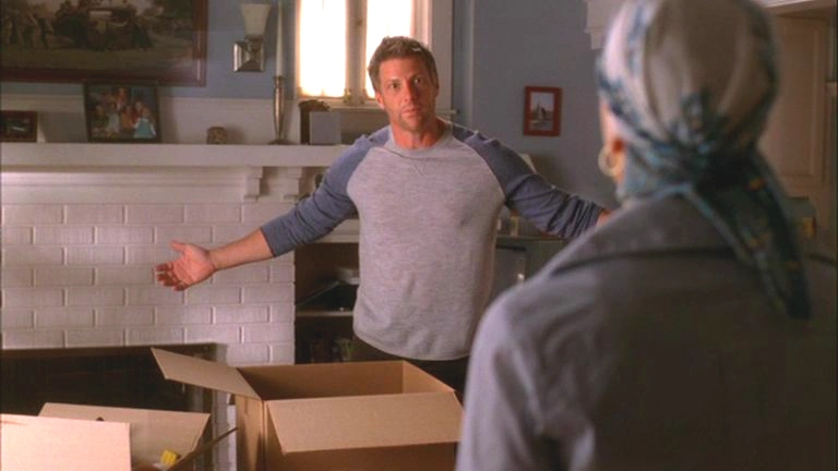 Lynette opens the door and enters her house and immediately begins talking. She makes her way over to Tom, who is packing a box on the coffee table, and says, "You know what we haven't done in a really long time? Make two hundred and fifty mini-pizzas in one afternoon." He asks her what she's talking about and Lynette explains that Bree's in a horrible jam and she said that they'd help out in catering the commitment ceremony tomorrow. Tom says he can't because he's busy as he's taking the boxes containing Kayla's things to her as she lives four and a half hours away now. She asks, at risk of cracking the egg-shells she's been walking on all week, if he thinks he'll stop being so angry any time soon. He says that he isn't angry at her and she professes that they had no choice, they had to get her out of the house. Tom yells, "I know! I am angry at the situation, will you please just let me be angry?!" She concedes and says that he can be as angry, and sulky, and pissy as he wants so long as he is there tomorrow helping her crank out the two hundred and fifty mini-pizzas. She begins to make her way to the stairs as Tom says that he's been told that when some wives ask their husbands to do them favors, they actually say please, before fleeing up the stairs, Lynette turns to him and says, "Oh Tom, don't you know an urban myth when you hear one?"