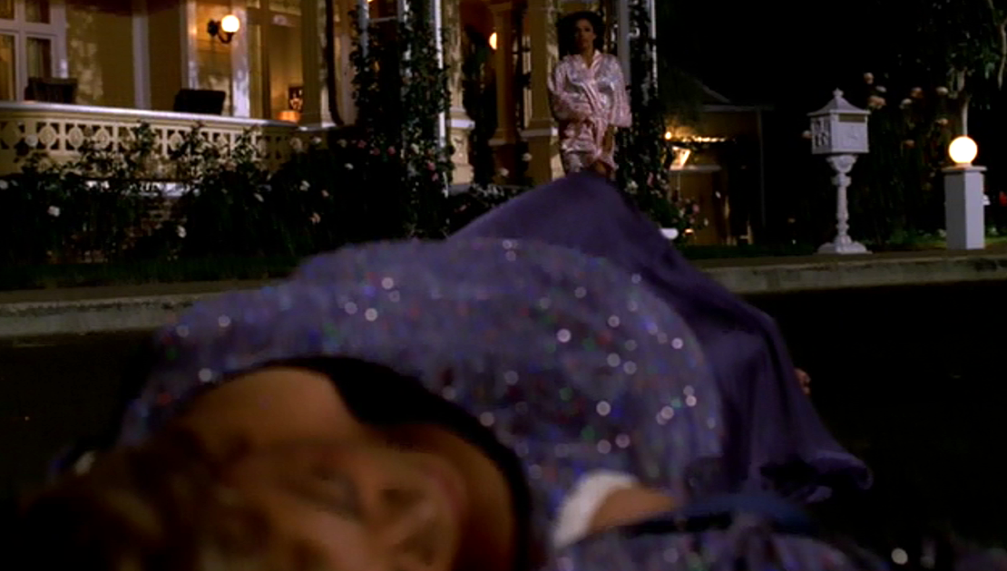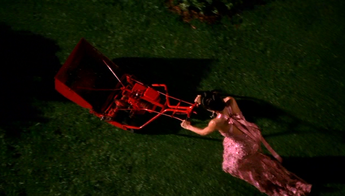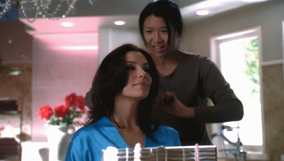 ![]() Gabrielle mows the lawn in her evening gown. ("Pilot") |