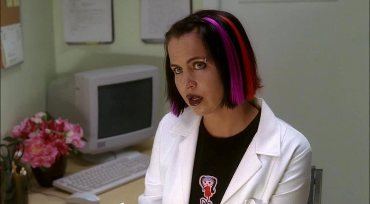 Nikki Braendlin is the actress that played the role of the goth receptionist seen in "Next".