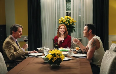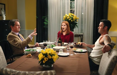 The night after Susan Mayer and Mike Delfino remarry, Katherine Mayfairgoes to the Hodge house and sees Orson has a hangover. Orson drank too much at the wedding. Orson, Carlos Solis, and Tom Scavo are suspecious about the new neighbors Angie Bolen and Nick Bolen. Orson points out they were only outside for a minute. Carlos, Orson, and Tom start to think Danny Bolen might have something to do with Julie Mayer's strangling. ("Being Alive")