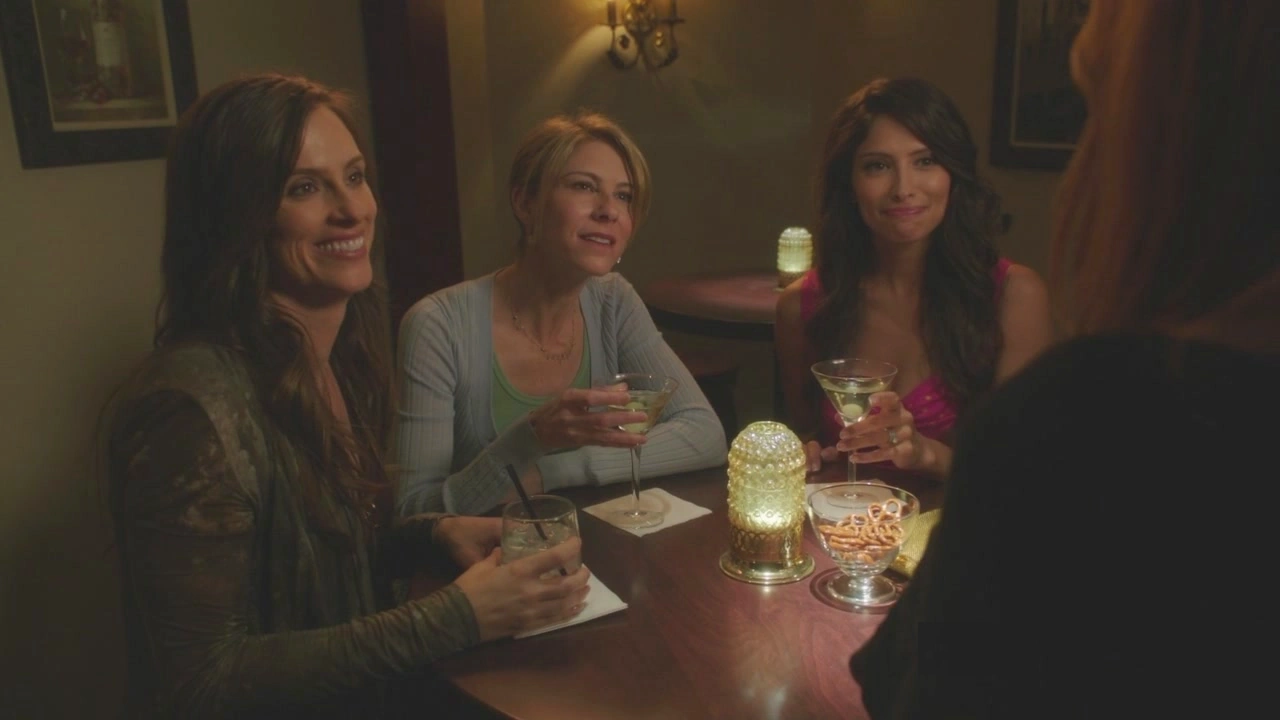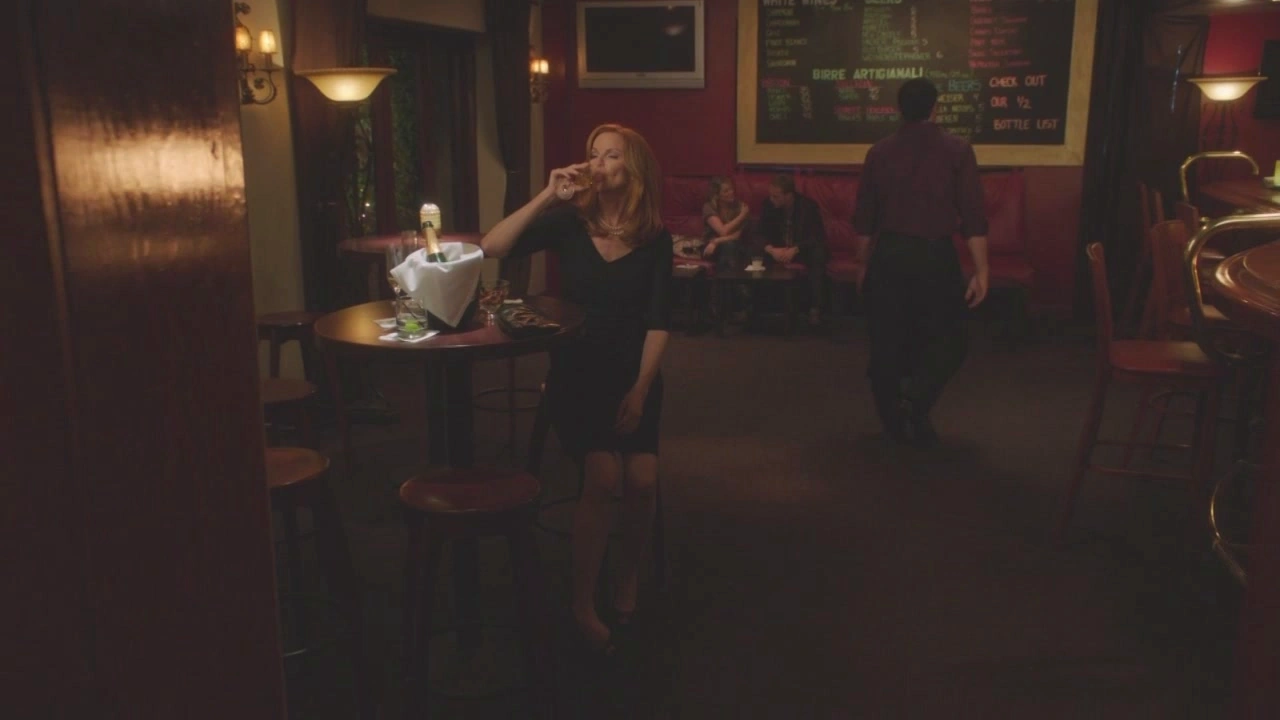 Later that night, Bree is sat alone at a bar drinking several glasses of wine. When she finishes one, she asks for another, and she’s clearly tipsy. As the bartender pours Bree her third glass of wine, he asks if she has a friend to drive her home. She sort of laughs and tells the man she is currently friendless, but assures him she’ll call a cab. With that, Bree hears three women laughing loudly at a table in the bar. She turns to them, and they’re all spitting images of her three best friends. She approaches them with her wine and says they seem to be having fun and she asks why they’re out. Kelly, the Susan look-alike says it’s a girl’s night out without children or husbands. The three girls cheer and tap glasses together, so Bree joins in too saying you don’t need family when you have girl friends, puzzling the women. Deirdre, the Lynette look-alike asks who Bree is, so Bree apologizes and introduces herself. She then tells them she’s been feeling disconnected lately, so she thought human contact is what she needed. Jill, the Gaby look-alike, tries to politely get Bree to leave by saying they haven’t seen each other in a while, but her plan only makes Bree want to stay more. She then yells for a bottle of champagne for the four girls and then she sits down with them. Bree asks how everyone knows each other, so Deirdre says she knows Kelly and Jill from college, and she knows Bree from randomly sitting at their table, making Bree chuckle, thinking she’s joking. Bree states that she “misses this”, worrying the three women even more.