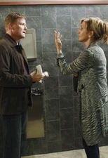 Meanwhile, at the airport toilet, it’s moments after Lynette explained the events of the night Alejandro was killed. Tom is stood speechless, so Lynette tells him to say something. He asks why he didn’t tell her before, so she tells him she wanted to but it seemed wrong to drag him into the situation. Suddenly, Jane slowly enters the bathroom looking for Tom because the plane is boarding. The moment she sees Lynette, she is full of disbelief. Lynette apologizes for what the situation must look like, angering Jane because she thinks she’s chatting Tom up. Tom explains that she isn’t, so Jane sarcastically admits that she’s the crazy party. She then begs Tom to just leave because she can’t deal with it all. However, as she begins to leave, Tom just stands still as he’s standing by Lynette. Jane begins to get upset, so Tom assures her they’ll go to Paris at the end of the month. Jane suddenly exits the bathroom, so Lynette runs after her. She tells Jane it isn’t Tom’s fault. Jane ignores her and approaches Tom; she begins to tell him that Lynette is trying to break them up. Tom apologizes and explains there are extenuating circumstances. Jane calmly asks what they are, but Tom keeps quiet, protecting the secret. Jane gives Tom his flight ticket, tells him she’s going to Paris and then explains he can meet her there if he wants. When Jane’s gone, Lynette apologizes, but a clearly distraught Tom tells her not to say anything. This then fills Lynette with even more guilt.