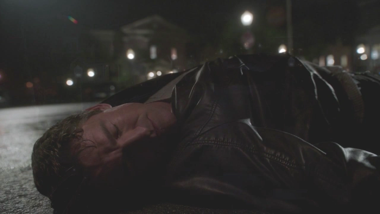 Over at a small garage, Chuck exits with a coffee and he begins to dial Bree’s phone number. Leaving a voice message for her, he tells her there’s no need for her to ring him back as he’s purely explaining that his investigation is about to go official. He tells her to meet him at the police station in the morning for an interrogation. As he crosses the road, he stops to put his phone is his pocket. When it’s away, a car suddenly appears from nowhere travelling at high speeds. It slams into Chuck with great force and he rolls over the top of the roof and then crashes to the ground. The car speeds away, leaving Chuck lying on the floor for dead.