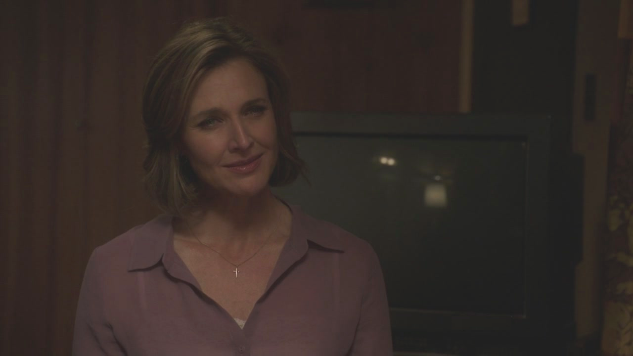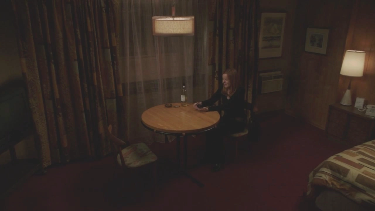 We see Bree entering a small room in a motel; it’s the same room she used to come to when she was having her affair with Karl Mayer. She’s got a haunting and abandoned look on her face as an employee explains that breakfast is available until 10:30 and then tips her saying the good stuff if gone by 8:00. Bree thanks the man but assures him she won’t be having breakfast. He gives her the keys to the room and tells her to suit herself before he leaves. Bree sits down at the small table that’s in the room and she pulls a bottle of wine from her purse and a gun. She places the gun on the table on just stares down at it, coldly. She looks up the slightest bit, and she notices something that makes her smile joyfully. It’s a vision of Mary Alice sat at the other end of the table, smiling at her. Bree asks her if she remembers how wonderful life was on the lane; Mary Alice slightly nods.