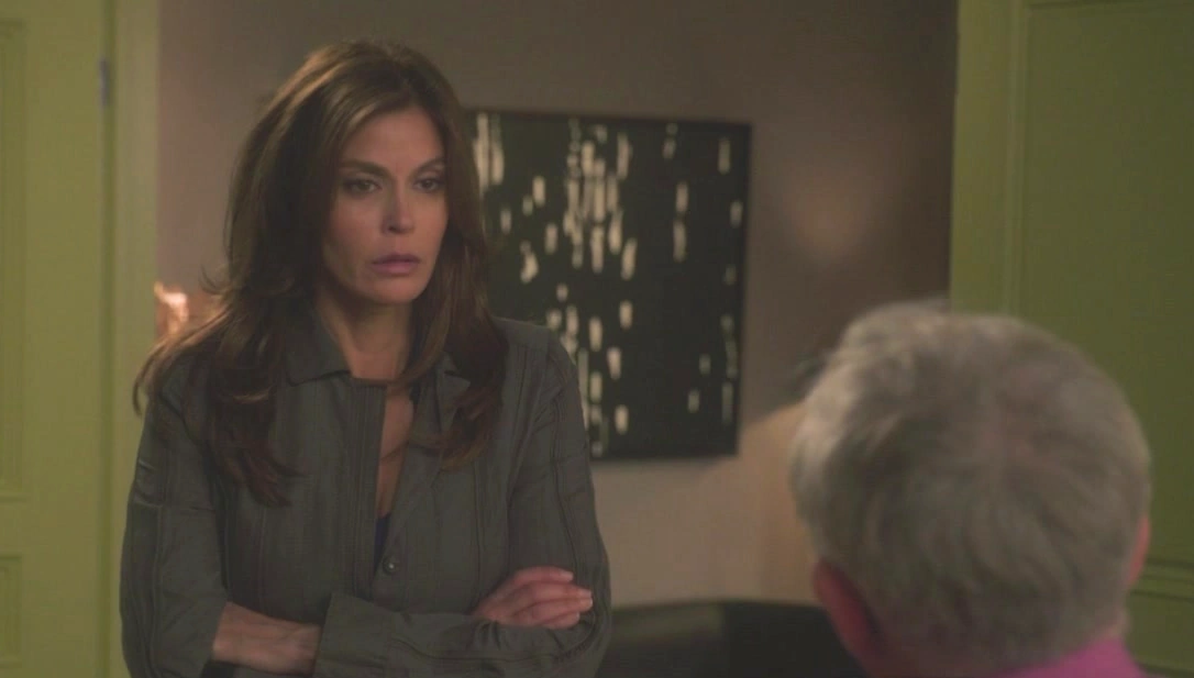 At Gabrielle’s house, Chuck knocks on the door. Gaby answers and is mortified to see Chuck. Chuck hears Juanita and Celia fighting in the background, so he asks if he arrived at a bad time. Gabrielle awkwardly tries to make a joke by saying she’s got two young children, so it’s always a bad time. As she tries to head back inside, Chuck asks her to step outside for a moment. She asks if he talked to Carlos and says he’s obviously ashamed of the affair. He says he didn’t and explains he took a different angle on the investigation and she was the reason for it. Confused, she asks what he means, so he explains that when he showed the girls the photo of Alejandro, Susan nearly “passed out”, Lynette tried so hard to show no emotions and Gaby smirked, which made him wonder. Gaby sort of laughs and asks why she’d do that. Chuck says that’s what he wanted to know, so he explains he began to do some research into her background, and he found out that Alejandro (now known as Ramon) is her stepfather. Gaby tries to wiggle out the situation, but Chuck says she shouldn’t say anything without a lawyer present. She asks if she’s under arrest, but he says she isn’t yet. However, he explains from the new evidence he can now start an official investigation, so he tells her to come to his office tomorrow, and if she doesn’t, he’ll send a squad car to get her.