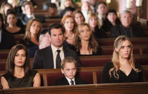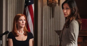 | As her trial nears, Bree begins to fall for her attorney, Trip Weston, and the ladies are shocked about Gabrielle's nonchalant attitude as Bree continues to stand trial and take the fall for Carlos in the murder of Alejandro. Meanwhile, Susan becomes concerned when Julie doubts Porter's commitment to be a hands-on father to their unborn baby, and, as Tom gets closer to being transferred to India for his job - thanks to Lynette - she begins to have second thoughts and tries to convince his boss to rescind the move. | |||||