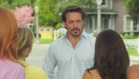 Ben asks her "Like what?", and Gaby is scared, shouting out "Oh, God!". The three women all turn to him, and Gaby starts up a nervous laugh, while Lynette subtly looks at Ben's crotch. Gaby then extends her hand to him and introduces herself as "Susan Delfino", prompting the other ladies to disguise a laugh, and he introduces himself as well. Lynette greets him, and he turns to Gaby and says that he's actually 6'2", he hasn't been 1,90 since he played rugby (he thanks her anyway), and in regard to the jeans, he could never figure out why they cost 200 bucks, but now he knows. He smiles as they laugh, and he then cuts his way through them and heads inside the house. Renee tilts her head towards them and says "Dibs", before leaving the group, as the women laugh quietly, and Bree then says "Look who's out". Susan is seen jogging on the other side of the street, moving toward her house, and Gaby yells at her, catching her attention. Bree asks if she'd like to join them for coffee, but Susan tells them she's sorry but she can't talk, as she's subbing that day and she's running late. She then enters her house and Bree asks if anyone's talking to her. Lynette says she tried, but Susan's not returning her calls, and Gaby says "Same here, she's obviously avoiding us. I'm telling you, that is one loose cannon." Bree says they have to get her back in the fold, as this is too risky. Lynette turns to Bree and adds "Says the woman who is dating a cop."; Bree asks if it ever occurred to them that it might be good to keep him close, because if there is ever an investigation, she will be the first one to know. They give her a look, and Bree adds that she's doing this for them. Lynette asks her friends if Chuck's that good in the sack, and Bree tells her she has no idea, trying to hold back a smile, along with a guilty face.