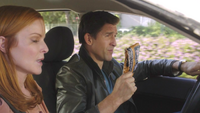 ![]() Chuck finds Gabrielle struggling to drive the car. |
