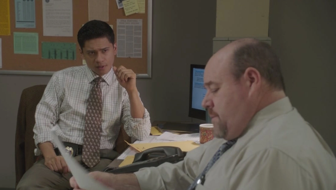 Detective Gillette finally opens the envelope sent by Orson Hodge. He skims the contents, and calls his co-worker, Detective Murphy, telling him he should take a look at it.