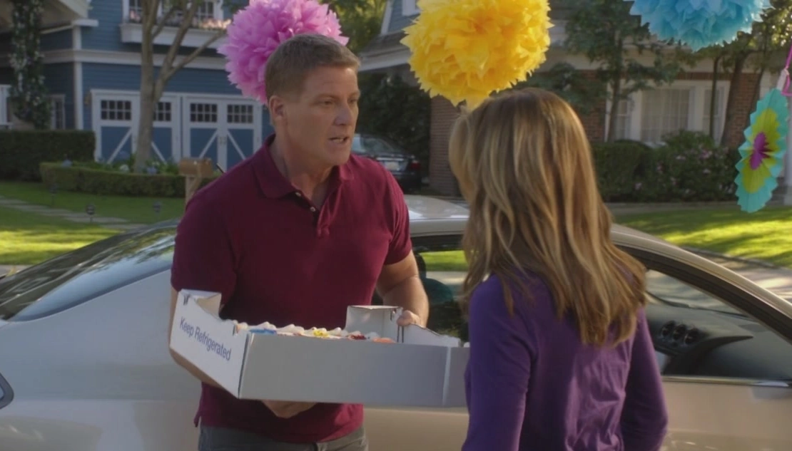 Shortly afterwards, Tom is taking the cake out of the backseat of his car, when Lynette comes up to him, clearly angered. He tells her the cake took longer than he thought, and he then notices she's not content. "This is how I find out you and Jane are going to live together, from her?". Tom isn't happy to hear this, as Jane wasn't supposed to be the one to tell Lynette. Lynette points out that Jane did tell her, in her house, where she and Tom raised their children together. Tom genuinely apologizes, but this doesn't suffise for his wife. He tells her he has to put the cake down, and she asks why he didn't tell her himself. Tom tells her he tried, the other day, but Penny showed up and he didn't want to ruin her birthday. Lynette reminds him that he's only known Jane for three months. Tom explains that he and Jane were talking about the future, and living together was the following step. Lynette then angrily wonders what the step after that would be (alluding to 'having children'), and, much to her surprise, Tom tells her they simply haven't talked about that. Lynette frustratingly points out that that's good, since they're not even divorced yet. Tom then shocks her by saying they should perhaps meet with a lawyer... that week. Lynette is disheartened, and Tom feels bad for all of this. Lynette says that she thought this was a trial separation, meant to make them see how they fared apart, to see if they could be happy... Tom reluctantly tells her that he is happy. Lynette is surprised. Tom then says, "If you're not, I'm really sorry", meaning it. Lynette is heartbroken. Cindy shows up, asking if she can take a picture of 'mom and dad', but Lynette walks away, leaving her saddened husband behind.