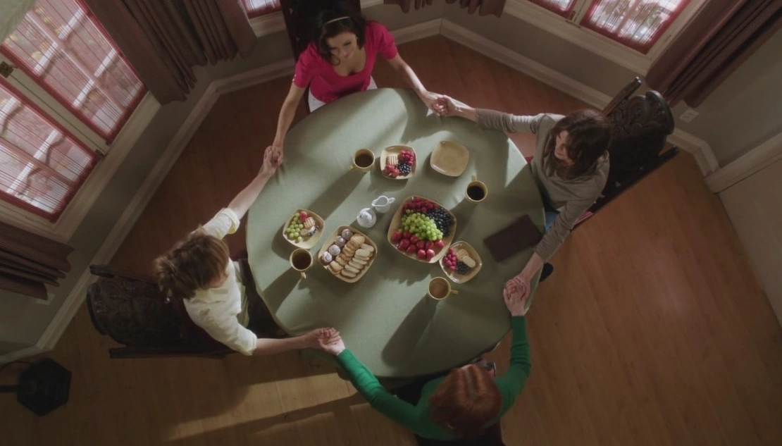 The girls are alarmed, and Bree goes on saying that she should have done something, she should have made him tell her where he was, so she could come to him. Gabrielle asks why; he would probably just torture her more. Bree tells them she knows what he's become, but there was a time when she loved that man very much. Lynette tells her he's not that man anymore. Bree is still upset, and the women don't quite know how to console her. Then, Gabrielle breaks the ice, by stating that they are finally in the clear. Susan adds that Gaby's right, as the letters were the last question mark left. Gabrielle says that maybe now they can get back to normal. "Yes. Our nightmare is finally over.", Susan says, smiling, as she reaches out her hands. The women all hold hands around the table.