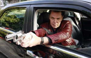 "You think this is crazy?", he asks, to which she nods affirmatively - he goes on saying, "No. What's crazy is making a fortune off of other people's misery, without thinking for one minute how they're suffering. What's crazy is thinking you can find happiness in, in a paycheck, or behind the wheel of a sports car. What's crazy is thinking that you're doing something important with your life just because you're wearing a tie." Through all of this, Carlos has managed to somewhat scare his wife, and take his tie off and hold it up to her face. Gaby takes the tie from him and he walks away, leaving her dazed and confused.