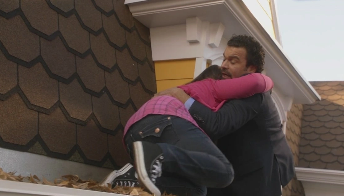 Carlos tries to squeeze past the window, grabbing on to its frame, and positioning himself out on the ledge. He tells Juanita they are gonna take this nice and slow. He reaches out to her, telling her to keep his eyes on him. Juanita does so as she shimmies across the ledge, crawling towards salvation. Down below, Gabrielle is terrified, yet hopeful. Carlos finally gets a hold of Juanita, but her foot slips and her leg comes down from the leg, which scares her mother, but thankfully she doesn't fall. Not long afterwards, Juanita finally makes it through the window to safety. From up there, Carlos looks down at his wife, who is filled with relief.